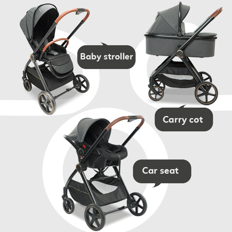 Cochecito de bebé plegable 3 en 1 con asiento reversible y respaldo ajustable, personalizable con OEM/ODM